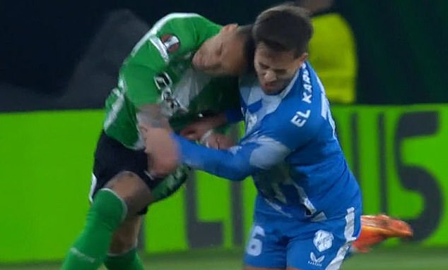 The incident occurred in the 21st minute of Real Betis’ league phase match against Utrecht.