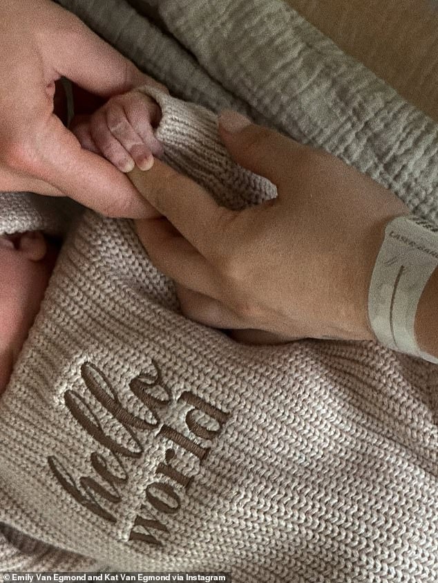 The pair revealed heartwarming snaps on Instagram showing them in the hospital with their new baby, called Maddix Louise Van Egmond (Emily, pictured)