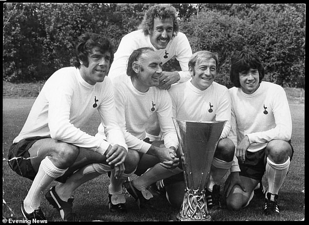 Martin Chivers (top) celebrates winning the European Cup in 1972 with (left to right) Tottenham team-mates Mike England, Alan Gilzean, Ralph Coates and Joe Kinnear