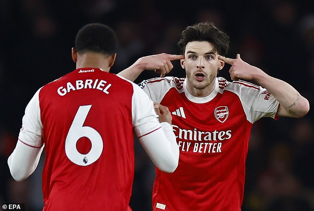 The side’s talismanic midfielder Rice has been just one of the players dissatisfied with recent league performances, caught on camera saying that something was ‘f***ing s***, every f***ing time’ after drawing with Nottingham Forest.