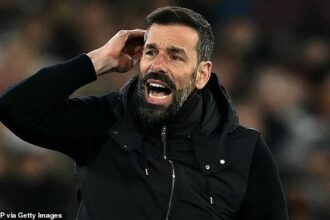 ‘They decided to do it in Arsenal,’ Guardiola said. ‘Only I want to say to my friend Mikel Arteta, if he wins the title it will be just because he spent, not because he worked a lot or his players. It’s like Liverpool. If Arne (Slot) win again, it will be because he spent a lot of money, right?
