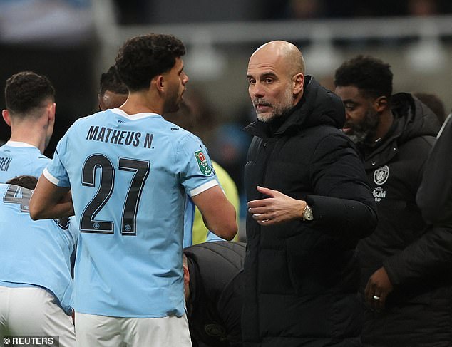 Guardiola refused to put City’s 2-0 defeat at Old Trafford down to Haaland’s fatigue or the unavailability of Marmoush, adding: ‘Omar is an exceptional player. He’s moving behind, he’s excited.