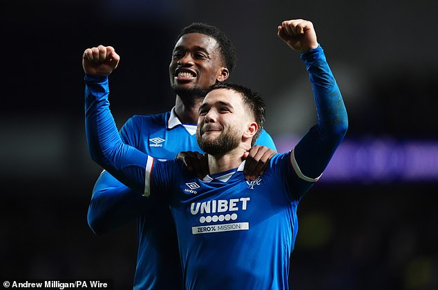 Nicolas Raskin celebrates scoring the second goal against Aberdeen at Ibrox