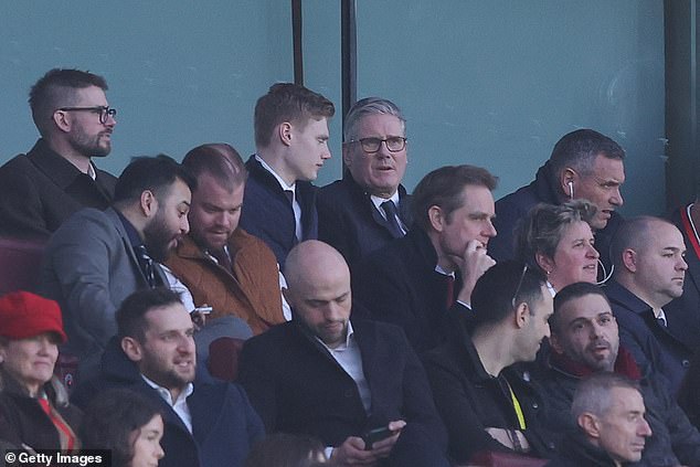 Arsenal fan Sir Keir Starmer (pictured here at the Emirates earlier this month) is in attendance at today’s Carabao Cup final between the Gunners and Man City