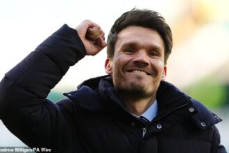 ‘The season isn’t finished yet!’ Keane said, bristling at Carragher’s suggestion that Solskjaer, who had managed at Molde and Cardiff City, wasn’t and would never be up to the job. ‘Manchester United could still finish fourth and then we might go, “You finished fourth, OK, we’ll give Ole the benefit of the doubt”. The season isn’t over yet, there’s four places available.’