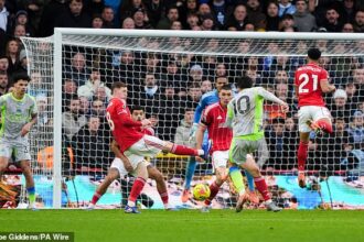 ‘No, like a lot of guys, he wants to play more,’ Amorim said when pressed on Mainoo’s situation before the Manchester derby last month. ‘I didn’t have a conversation with him before the window closed – I did this week.