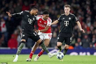 ‘Like a lot of guys, he wants to play more,’ said the United head coach. ‘I didn’t have a conversation with him before the window closed, but I did this week. Because I don’t want Kobbie Mainoo thinking I was having any conversation with him just to hold onto him.