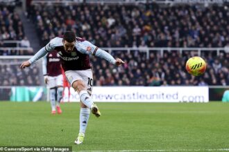 Sky Sports footage showed Wilder shaking the man’s hand and apologising and Sky Sports News, presenter Julian Warren said: ‘They’re walking off and Wilder sees a ball and puts his left boot through it.