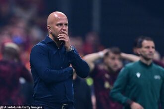 ‘We had just been to Greece and won the game,’ he said. ‘I spoke about it at the time — maybe I should have made two or three more changes just to freshen the squad up a little bit. They made six changes and looked a little bit fresher on the night than we did.