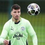 A stalemate is also the only route to a highly improbable play-off. After the sides’ 1-1 draw at the Emirates in September – when Gabriel Martinelli’s stoppage-time lob cancelled out Erling Haaland’s opener – they would be level head-to-head.