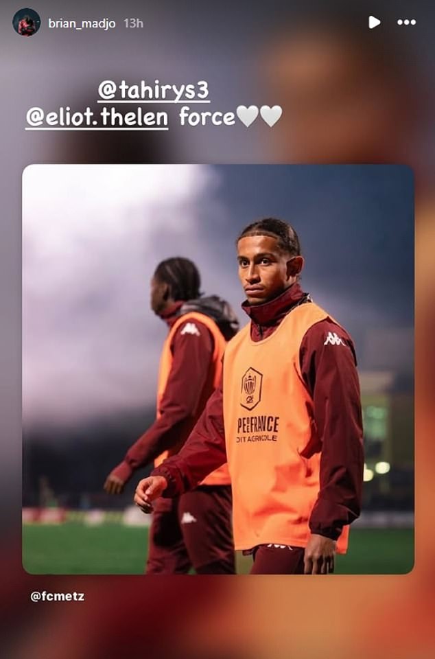 Metz player Brian Madjo shared a message of support to Tahirys and Thelen in a post on Instagram.