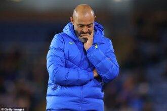 ‘That is a penalty, red card and Leeds have the chance to go 2-1 up against 10 men with a few minutes to play,’ says Clattenburg. ‘They have been robbed. I don’t care if it’s 1970, that is a kung-fu kick to his head.’