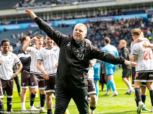 Neil Lennon savours Dunfermline’s win at Hampden with his customary airplane celebration