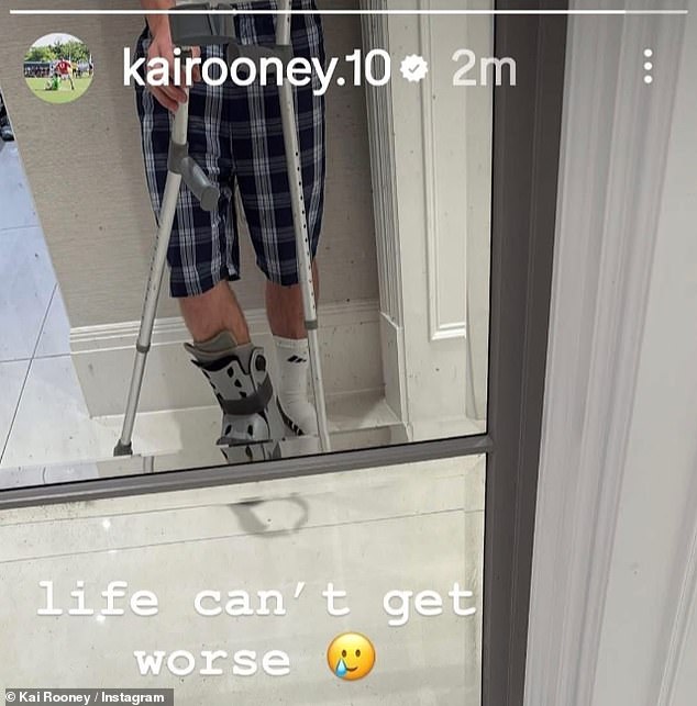 Kai, 16, has been involved with the Red Devils’ Under-18 side but has been sidelined for months, having been injured, on crutches and his right foot in a protective boot.