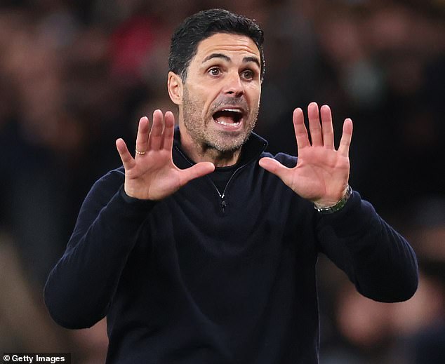 ‘What are we talking about guys, please?’ Arteta asked after the game. ‘Enjoy where we are as a club. If someone doesn’t want to do it, so be it. But we have done something that has never been done in the history of our club. This league takes the hell out of you.’