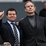 ‘My concern would be, while they don’t have any borrowings, the elephant in the room is that West Ham owe £191m in instalments for players they have already signed,’ adds Maguire. ‘That has got to come out of future cash. That would put the pressure on to the owners, who presumably would have to go down the borrowing route.’